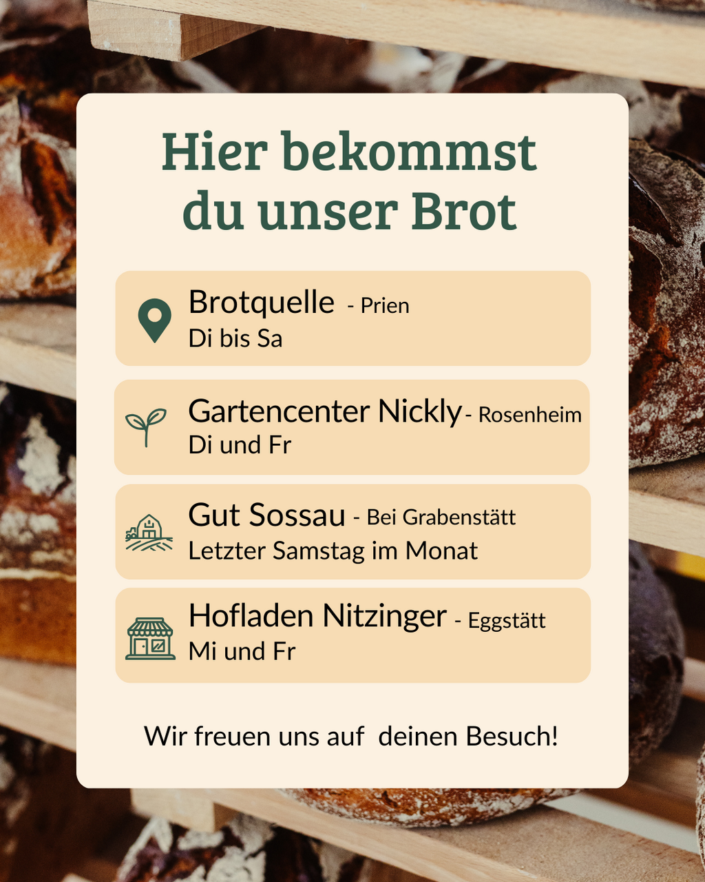 Wir lieben und leben unser Handwerk. Zusatzstoffe, technische Hilfsmittel oder gar Backmittel kommen bei uns nicht in den Teig, stattdessen nur Mehl, Wasser und Salz – Zeit und Liebe. Je nach Sorte verfeinert mit Gewürzen, Saaten, Nüssen oder weiteren natürlichen Zutaten wie Oliven, getrockneten Tomaten, Cranberrys oder Ähnliches.
